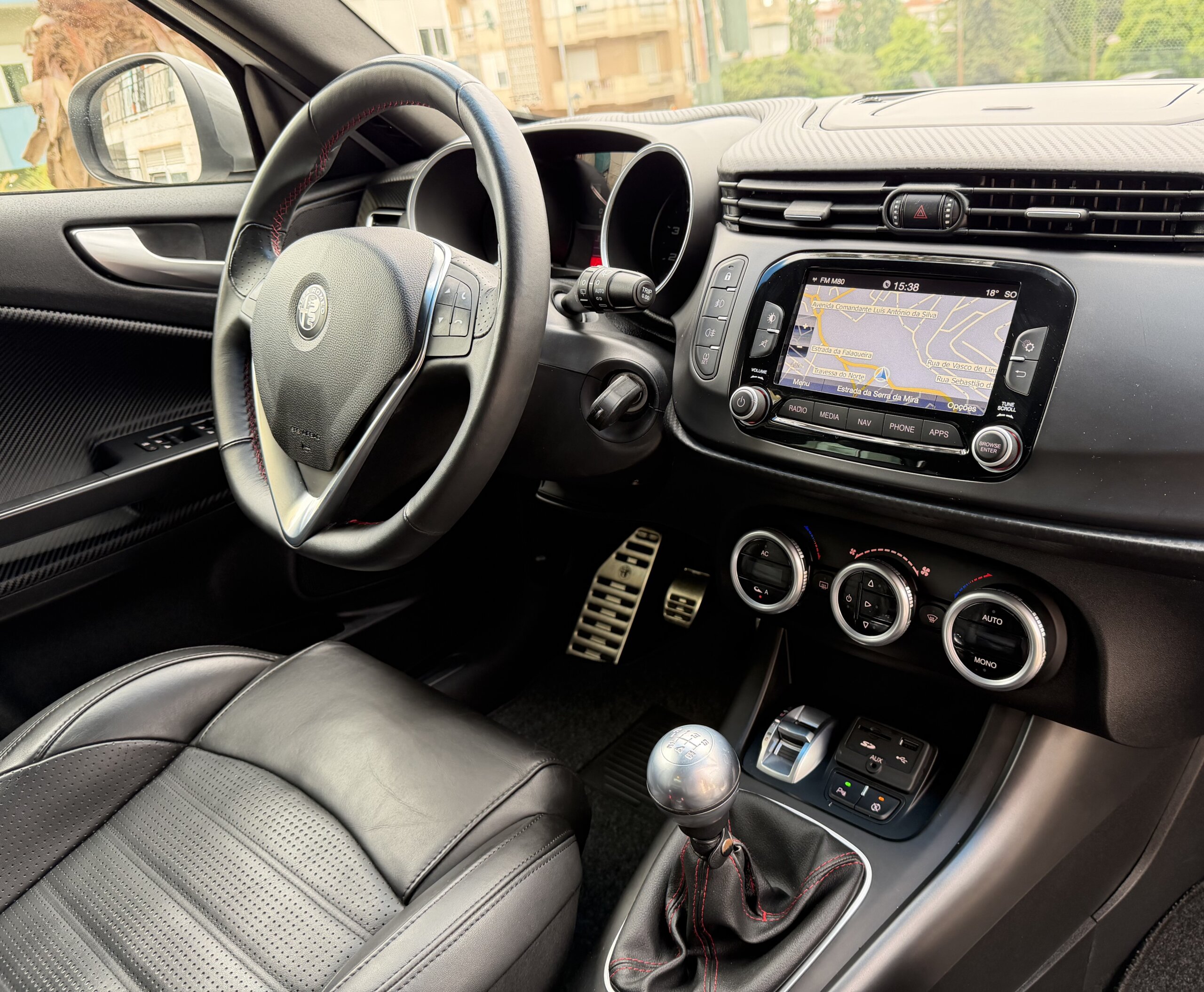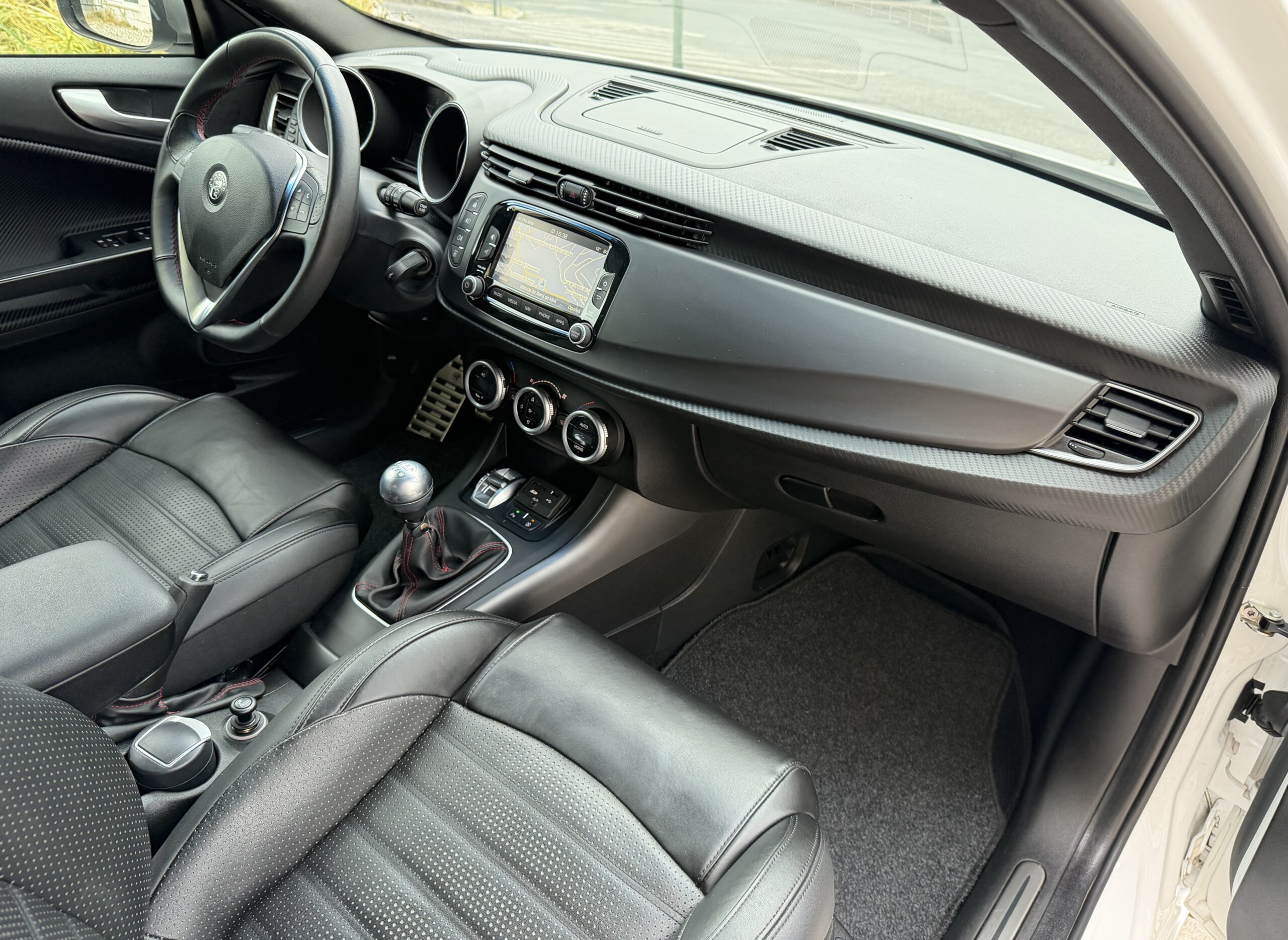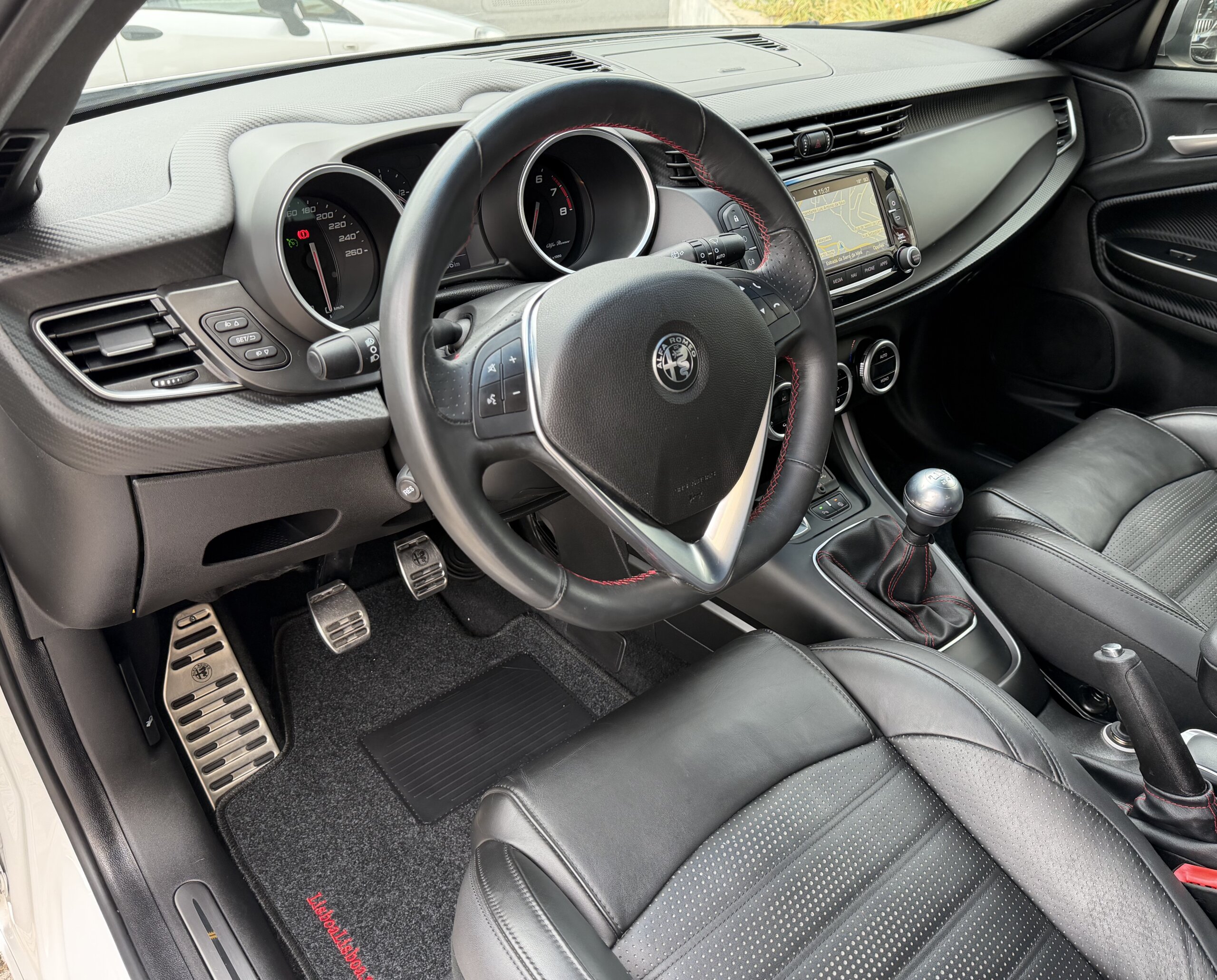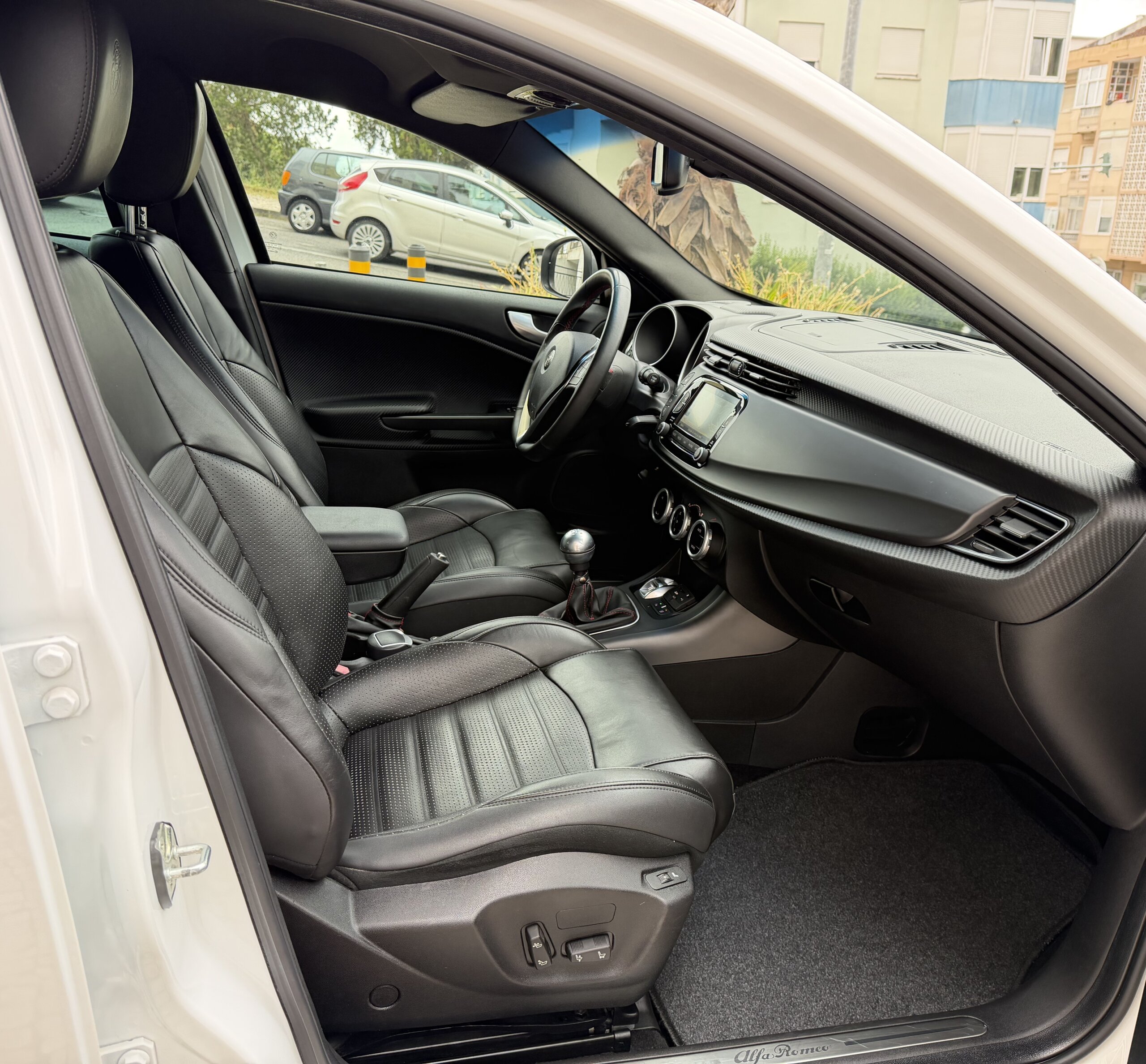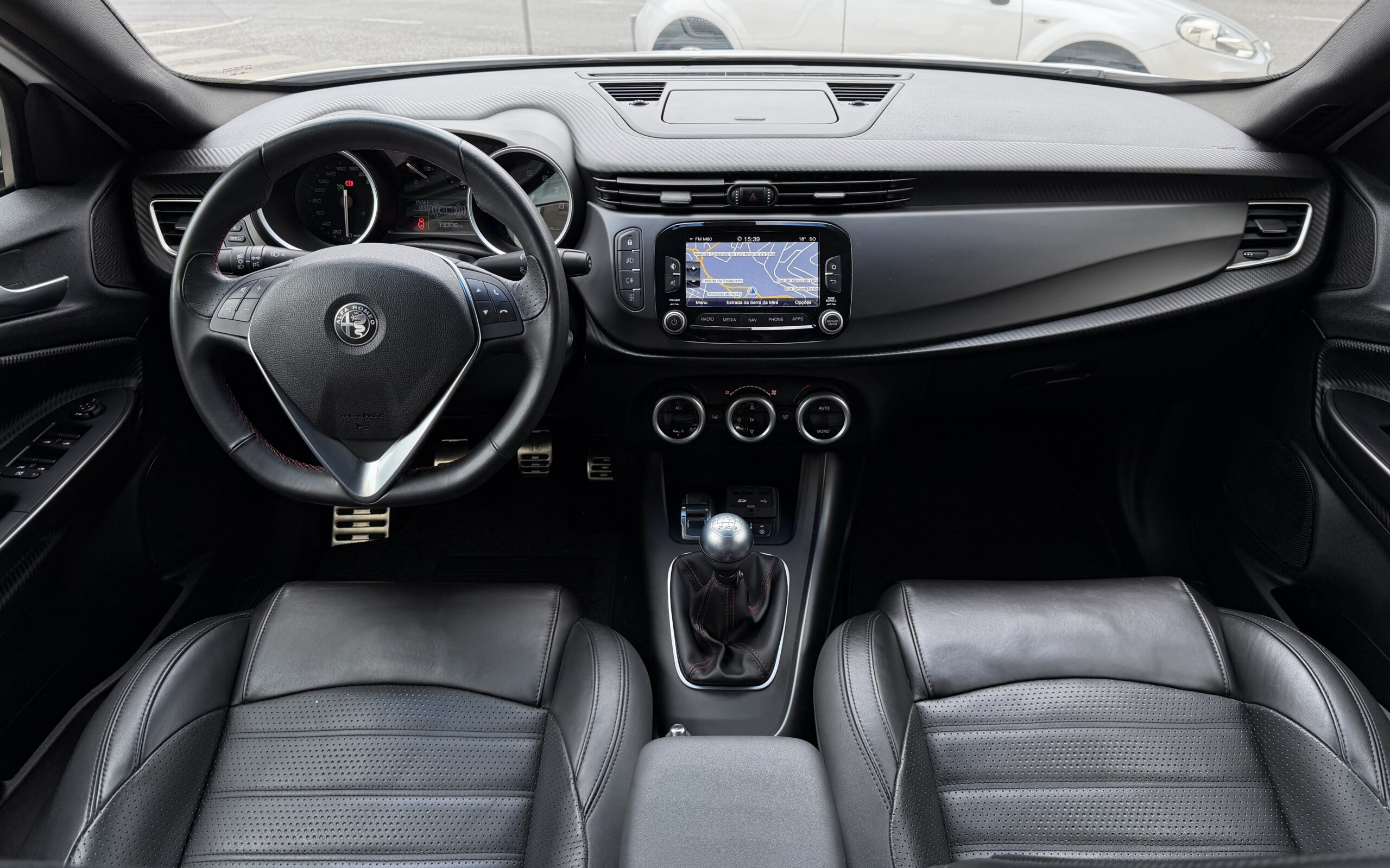 Viatura nacional. Alfa Romeo Giulietta 1.4 T-M Air Sport compacto desportivo, económico e muito bem equipado. Motor a gasolina de 150cv, caixa manual de 6 velocidades, cor branca, 5 portas e 4 lugares.