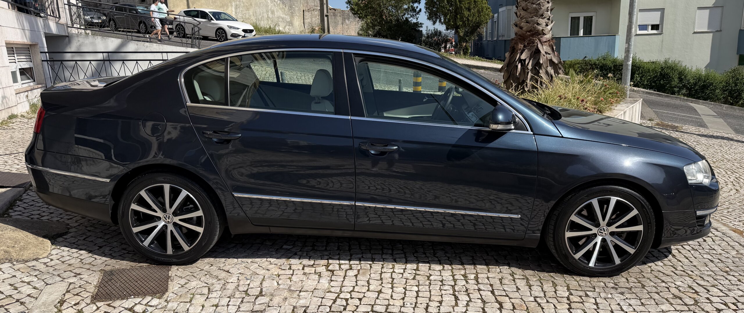Viatura nacional. VW Passat 2.0 TDI Edition Highline sedan espaçoso, económico e muito bem equipado. Motor diesel de 170cv, caixa manual de 6 velocidades, cor cinzento, 4 portas. Consumo médio de apenas 5,6L/100km (urbano: 7,4L/100km, extra-urbano: 4,6L/100km). Primeira matrícula em 07/2008. 163.076 km.